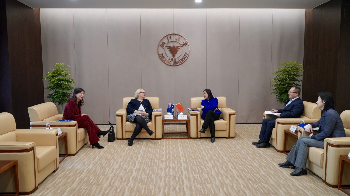 On the afternoon of January 16, a delegation from the University of Western Australia (UWA), led by Pro Vice-Chancellor (Global Engagement) Jennifer Howell, and Associate Pro Vice-Chancellor (Global Engagement) Maggie Ying Jiang, visited the International Campus, Zhejiang University.
