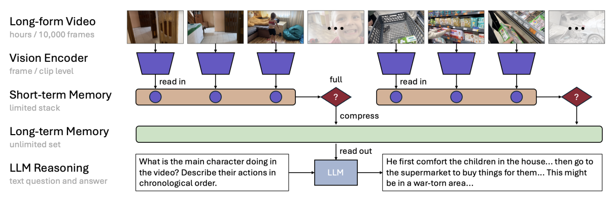 ▲相关研究中长视频理解中的分层记忆与推理框架